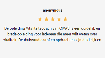 bij een gemiddelde score van 5,5 of hoger voor het ingezonden huiswerk en een voldoende voor het examen, ontvang je het Civas-diploma Vitaliteitscoach |