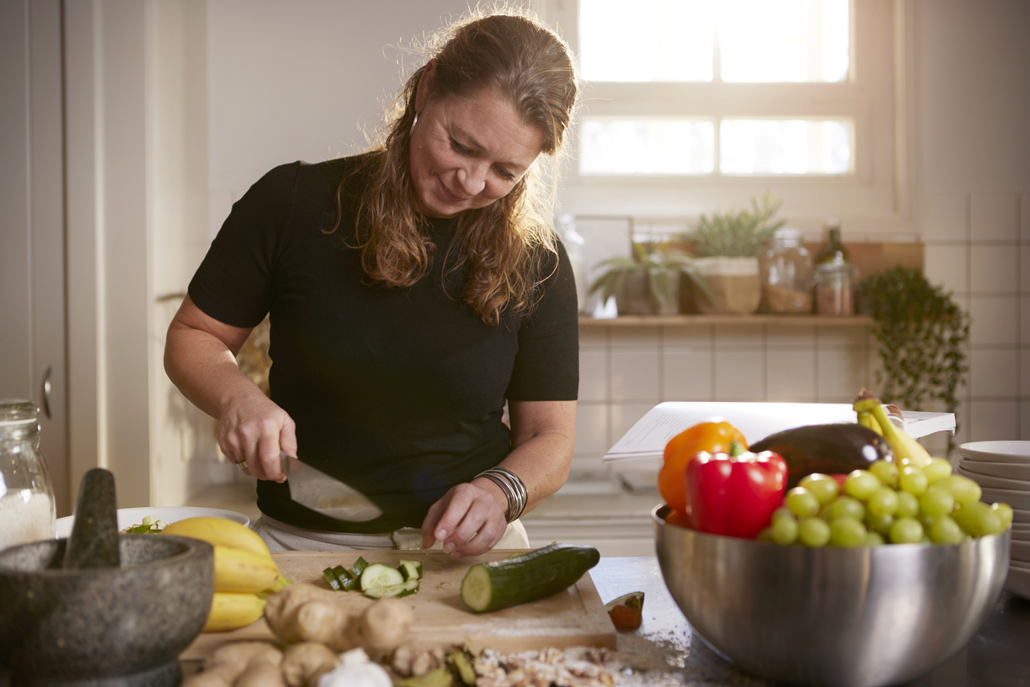 “Mijn oudste dochter had astma en allergie en medicijnen losten dat niet op. Zelf had ik last van hooikoorts en eczeem. Ik ging boeken en wetenschappelijke onderzoeken lezen over voeding en mijn interesse was meteen gewekt. Toen steeds meer mensen mij om advies vroegen dacht ik: hier wil ik mijn beroep van maken. Tot die tijd was ik grafisch vormgever en trainer. Heel leuk, maar het roer ging om.”