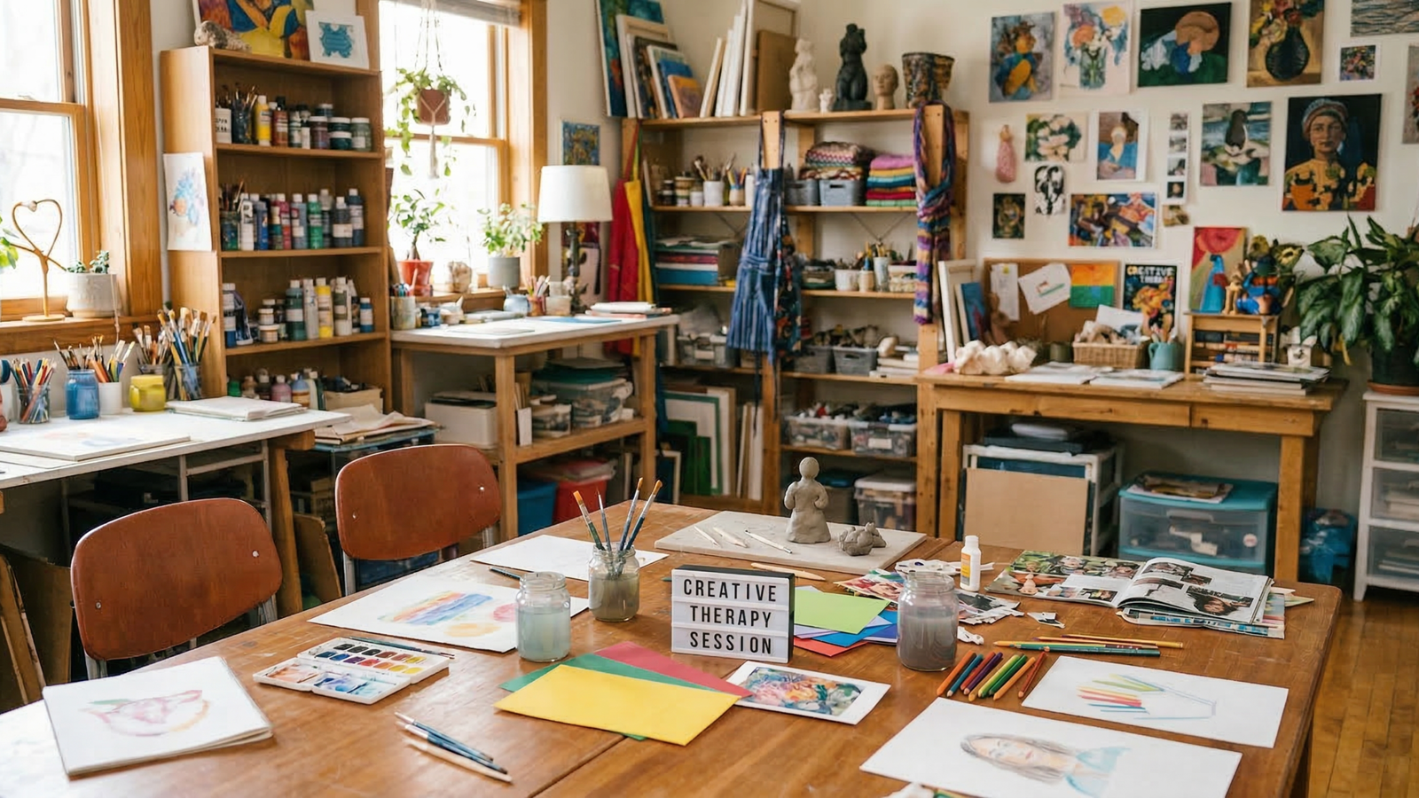 De praktijkdagen voor de opleiding Creatieve therapie worden gegeven door Ellen Dekker in haar atelier in Zutphen.